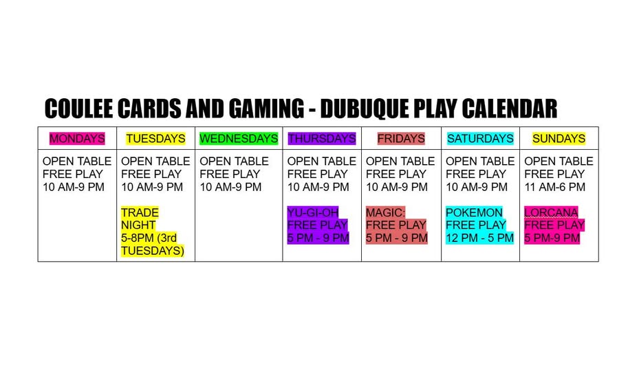 Our Dubuque shop is tucked inside the Kennedy Mall and run by Gavin Wooldridge and his awesome team of passionate collectors on staff. A lifelong Chicago sports fan and Pokémon enthusiast, Gavin has been collecting since he was a kid, and now he’s thrilled to be a part of a space where that same childhood excitement lives on. From casual fans to serious collectors, everyone can find their vibe here! Whether you’re playing your favorite TCG, browsing sports cards, or hanging out at one of our monthly trade nights, there’s always something happening! Family-friendly, collector-focused, and full of heart—this is where Dubuque comes to trade, connect, and enjoy the hobby together!